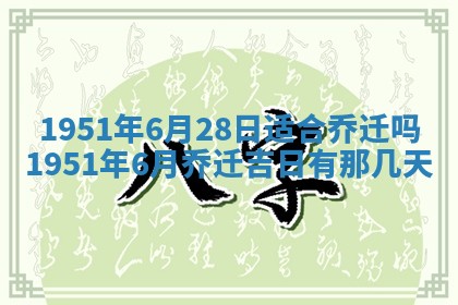 1951年6月28日适合乔迁吗,1951年6月乔迁吉日有那几天,1951年6月乔迁吉日一览表
