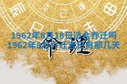 1962年8月18日适合乔迁吗,1962年8月乔迁吉日有那几天,1962年8月乔迁吉日一览表